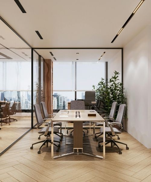 Office interiors must support both productivity and client interaction. Meeting rooms, reception areas, and workspaces should appear organised and welcoming.